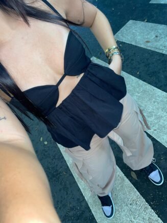 Top con copas en tela blonda y parte de atras con sistema de cierre. Tela: Blonda Modelo usa talla S En cuanto al cuidado de la tela drill, se recomienda seguir las siguientes indicaciones: Lavado a mano: Es el método recomendado para la limpieza del producto, acuérdate de disolver bien el detergente antes de introducir…